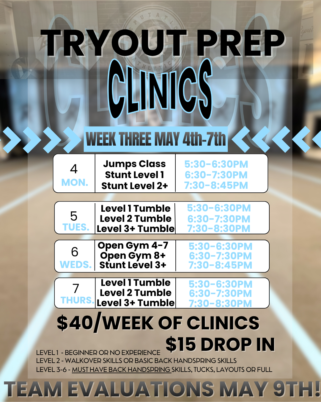 Week three of clinics are here! With Team Evaluations on May 9th just around the corner, this is one of your last chances to fine-tune your skills and feel confident going into tryouts. Don’t miss it! 📣